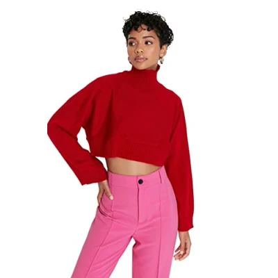Material Composition: 100% Acrylic Occasion: The Rot Regular fit Sweaters is perfect for Casual occasions. Our Collection offers affordable fashion for every occasion and style – from casual & relaxed to smart & elegant. Trendyol Collection translates the latest runway trends into wearable outfits for your wardrobe. Design: This Basic Knitwear Sweater for Women has Long Sleeve Standing collar Straight pattern. It is Regular fit fit. If you are in between size,please size up. Hand wash at a maximum temperature of 30°C. Do not use bleach. Do not tumble dry. Iron at low temperature. Do not dry clean.