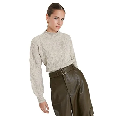 Material Composition: 100% Acrylic Occasion: The Stone Regular fit Sweaters is perfect for Casual occasions. Our Collection offers affordable fashion for every occasion and style – from casual & relaxed to smart & elegant. Trendyol Collection translates the latest runway trends into wearable outfits for your wardrobe. Design: This Basic Knitwear Sweater for Women has Long Sleeve Standing collar Hair Braid pattern. It is Regular fit fit. If you are in between size,please size up. Hand wash at a maximum temperature of 30°C. Do not use bleach. Do not tumble dry. Iron at low temperature. Do not dry clean.