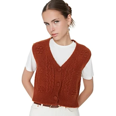 Material Composition: 80% Acrylic,20% Polyester Occasion: The Tan Regular fit Sweater is perfect for Casual occasions. Our Collection offers affordable fashion for every occasion and style – from casual & relaxed to smart & elegant. Trendyol Collection translates the latest runway trends into wearable outfits for your wardrobe. Design: This Basic Knitwear Sweater for Female has Sleeveless Crew neck Cable knit pattern. It is Regular fit fit. If you are in between size,please size up. Please check the product label for detailed care instructions.