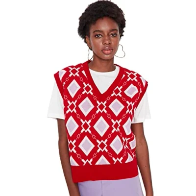 Material Composition: 100% Acrylic Occasion: The TILE Regular fit Sweater is perfect for Casual/Casual occasions. Our Collection offers affordable fashion for every occasion and style – from casual & relaxed to smart & elegant. Trendyol Collection translates the latest runway trends into wearable outfits for your wardrobe. Design: This Basic Knitwear Sweater for Women has Sleeveless V Neck Diamond pattern pattern. It is Regular fit fit. If you are in between size,please size up. Please check the product label for detailed care instructions.