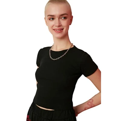 Trendyol Women Young Fitted Basic Crew Neck Knit Blouse, Black, M