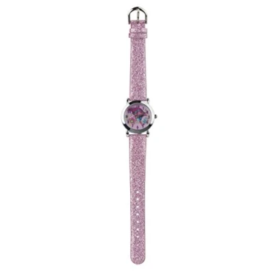 Pink glitter pu strap Analogue display Features princess poppy on the dial Great gift for any trolls fan! 12 month manufacturer guarantee
