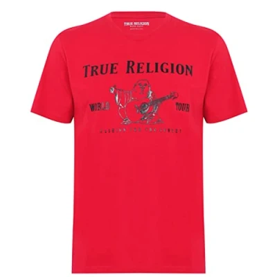 True Religion Men's Short Sleeve Metallic Buddha Tee, True RED, M