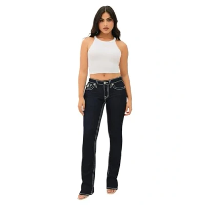 Classic bootcut silhouette with a mid-rise waist for a flattering fit Signature Big T stitching on back pockets adds a stylish touch Crafted from premium denim for durability and comfort Versatile "Body Rinse" wash pairs effortlessly with any outfit Features True Religion's iconic flap pockets for a timeless look