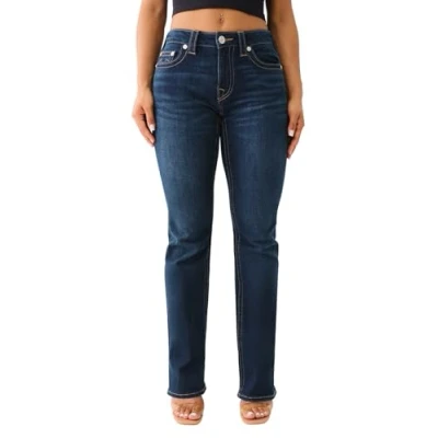 True Religion Women's Becca Mid Rise Bootcut Crystal Flap Single Needle Stitching Peak Spot Jeans Pant, Indigo Upgrade, 32