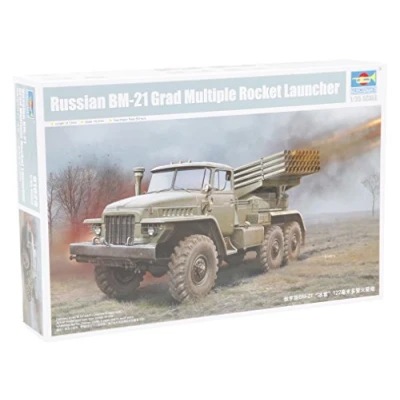 Plastic model kit of a Soviet multiple rocket launcher from the 1960s with over 550 parts, rubber tyres and photo parts. Length built 211.5 mm / width 78.5 mm. Von Trumpeter, detailliert ausgefhrt. Plastic model kit for building and painting., Manufacturer: Wa san Development Macau Limited