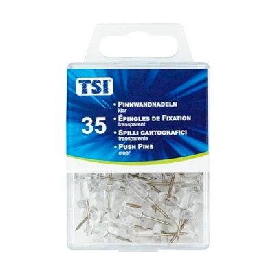 35 pieces in one pack Colour: clear/transparent Length: 22 mm, head diameter: 9 mm In a practical storage box Made in the EU