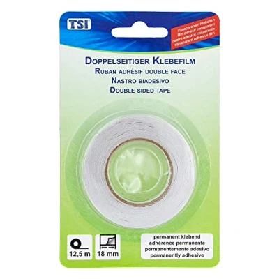 Double-sided adhesive 18mm x 12.5m Permanently adhesive Peel off the roll, stick, peel off the protective paper, press on, done Can be cut to size. Ideal for attaching lightweight materials (e.g. paper, cardboard, pictures, etc.)
