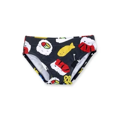 Black sushi print swim trunks for boys. Hey Sushi Collection