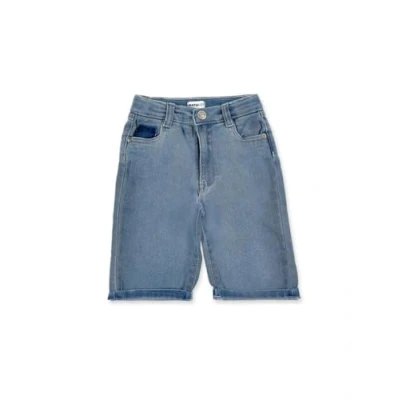 Boy's blue denim bermuda with pockets and button front closure. Skating World Collection.