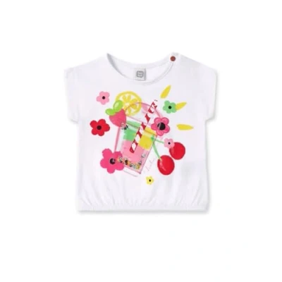 White jersey t-shirt with smoothie, fruit and flower print and elastic waist for girls. Creamy Ice Collection Machine washable at max. 30ºC delicate cycle, do not bleach, do not tumble dry, hang or line dry, iron at 110ºC max, do not dry clean