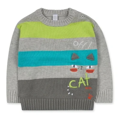 Grey tricot jumper with cat print for boys. Cattitude Collection.