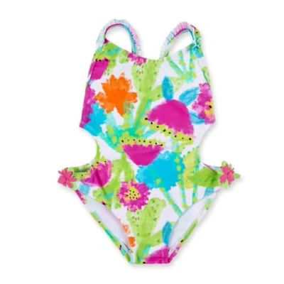 Green floral printed trikini for girls. Tropadelic Collection