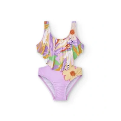 Lilac flower print trikini for girls. Paradise Beach Collection