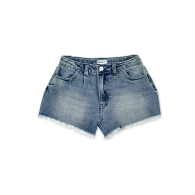 Blue denim shorts with pockets, seamless hem and elastic waist for girls. Californian Chill Collection