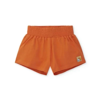 Girl's orange knit short with elastic waist. Paradise Beach Collection