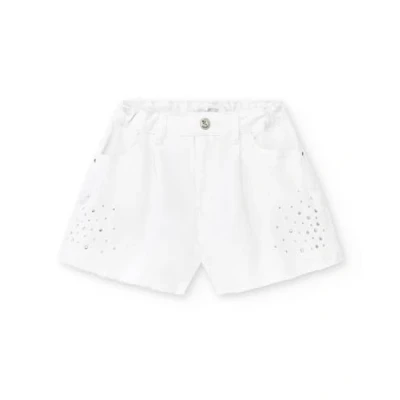 Girl's white denim short with bright applique, pockets and elastic waistband. Ultimate City Chic Collection