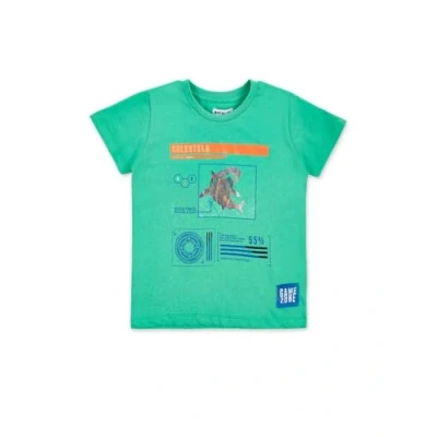 Green jersey t-shirt with printed motifs for boys. Game Mode Collection Machine washable at max. 30°C short spin, do not bleach, do not bleach, do not tumble dry, air dry, iron at 110ºC max, do not dry clean