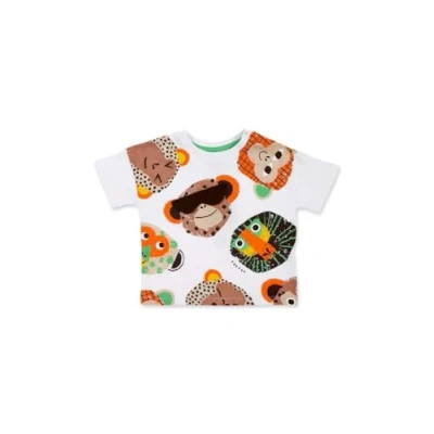 White jersey t-shirt with monkeys print for boys. Banana Records Collection. Machine washable at max. 30ºC delicate cycle, do not bleach, do not tumble dry, hang or line dry, iron at 110ºC max, do not dry clean