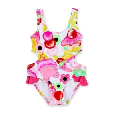 Pink ice cream print trikini with side ruffles for girls. Creamy Ice Collection