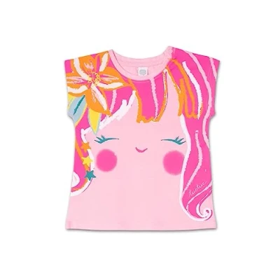 Pink knitted t-shirt with fuchsia print for girls. Seashell Collection
