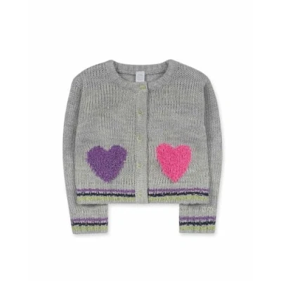 Grey tricot jacket with heart embroidery and button front closure for girls. Robot Maker Collection