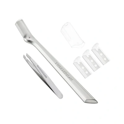 TWEEZERMAN Eyebrow Razor with Mini Slant Tweezer Set (Mini & Brow Set), Silver