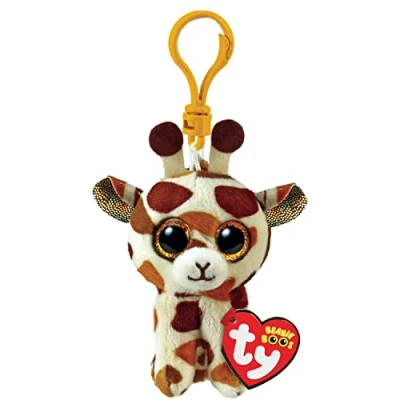 An adorable Ty Beanie Boos Giraffe Plush Carabiner Keychain Name: Stilts Dimensions: 12 cm. Date of birth: December 10 Colour: brown, white. with glittery golden eyes! Beanie Boo's Clips is the line of fun plush keychains with large, colourful and glittery eyes inspired by the world of animals, nature or fantasy, all to collect! Great gift idea for a birthday or birthday or for any occasion. Perfect puppets to conquer the hearts of children, teenagers and why not even the biggest!, Manufacturer: Ty
