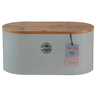 BREAD BIN | Living grey bread bin is perfect for organising fresh baked goods on the countertop. The subtle pastel grey is perfectly complemented with the silver 'bread' badge which adds a touch of elegance to the accessory. The sustainably sourced bamboo lid can double as a cutting or preparing board. STORAGE | Our Bread bin lids sit perfectly on the top of the bread bin, allowing contents to breathe and be preserved properly. LIVING GREY | The Living range in soft pastel grey is not only practical but it looks beautiful in the kitchen. The range incorporates everything from durable coated steel storage with sustainable bamboo lids to high quality, stoneware dinnerware. TYPHOON | For 30 years, Typhoon Housewares have been creating a variety of exciting products that have cemented our reputation for fashion-led and affordable kitchenware. Our stylishly designed collections have our customers home décor, lifestyle and tastes firmly at the heart. Whether it be bold and glamourous, muted and minimalistic or traditionally rustic, we have something for everyone and always at great value. Matching storage canisters also available