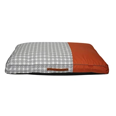 Comfortable and practical floor mats, can be used in raised dog beds FASHION - Peach skin touch fabric and dense padding to combine comfort and style. Ethnic collection and design: Berber print and trendy terracotta colours for an ethnic chic style, fine finish with anthracite grey piping Careful finishing: this sleeping bag is equipped with a anthracite grey piping that enhances its basket, as well as a leather handle in camel colour Easy care: removable cover, you can clean the cover in the machine at 30 degrees, ensuring maximum hygiene for your dog.