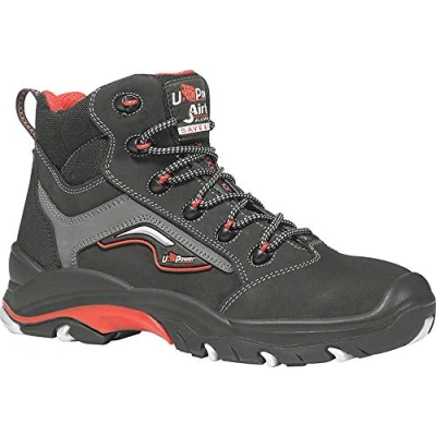 U Power UR10124 44 "Robust" Lace up Boots, S3 SRC ESD, Size 9.5, Black/Grey/Red