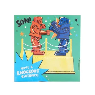 A truly unique birthday card for your son that takes the shape of a retro “Rock ‘Em, Sock ‘Em Robots” game, complete with moveable punching arms. Message Inside Reads: Happy Birthday! Card Size: 210mm x 210mm | Envelope Included Birthday Card for Son This product is FSC-labelled, meaning you’re supporting responsible forestry and helping fight climate change, protect biodiversity, and support communities.