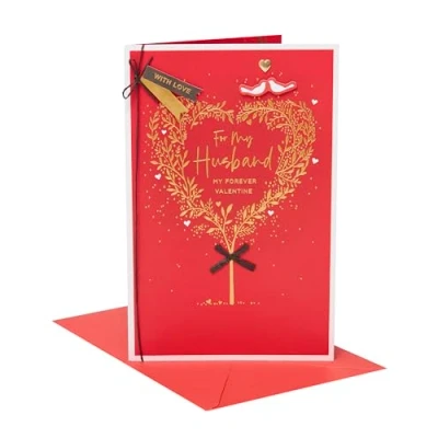 UK Greetings Valentine's Day Card For Husband Gold Heart Tree Design