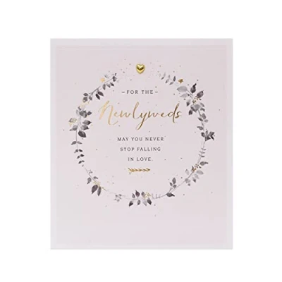 Send wishes and congratulations to the newlyweds with this beautiful wedding card, featuring a subtle wreath design with gold foil details and a gold heart gem Message Inside Reads: ...and memories that last forever. Congratulations Card Size: 159mm x 184mm Wedding Card Envelope Included