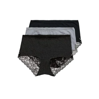 3 hipsters with lace - 1 attractive price Closer cut than a classic pantie Straight leg cut Side height: approx. 11 cm (in size 16/18 UK Pure cotton gusset