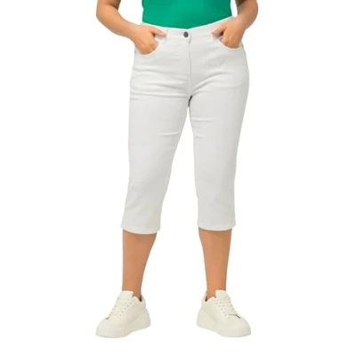 Ulla Popken Women's Capri Jeans Basic Slacks, White (White Denim), 33W / 32L