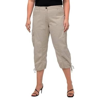 Ulla Popken Women's Cargo Pants, Marmor, 53W / 32L