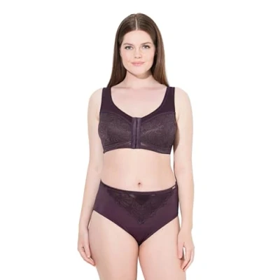 Ulla Popken Women's Comfort Bra Front Closure Bra, Grape red, 115F