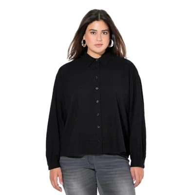 Ulla Popken Women's Oversized Shirt Collar Long Sleeve Blouses, black, 54 56