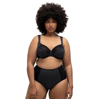 Ulla Popken Women's Bra, Underwired, Pinstripe, Black, 38C