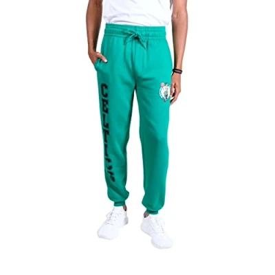 ULTRA GAME NBA APPAREL - Officially Licensed by The NBA (National Basketball Association), Ultra Game NBA by UNK features innovative designs with forward thinking graphics and textures. ATHLETIC FIT: French Terry cotton with ribbed ankle cuffs and a drawstring at the waist create a slim, athletic fit. Order a size up for a looser, relaxed fit. STYLISH DESIGN: stylish design features include two side pockets, one back pocket, and a tapered fit with leg cuffs that fall just above the ankle. SOFT AND LIGHTWEIGHT FABRIC: the fabric is 60% cotton and 40% polyester for a breathable and moisture-wicking blend. The material is soft and lightweight. NBA GRAPHICS: NBA graphics are screen printed with official team colors. The result is a high-quality design with bold colors.