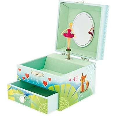 Keep all those precious bits safe in this pretty colourful box. An ideal first jewelery box for any young princess. The Ideal Gift Watch the ballerina dance to the tune Renards Fox This wonderful music box has a clasp seal top and small draw at the bottom, Manufacturer: Ulysse