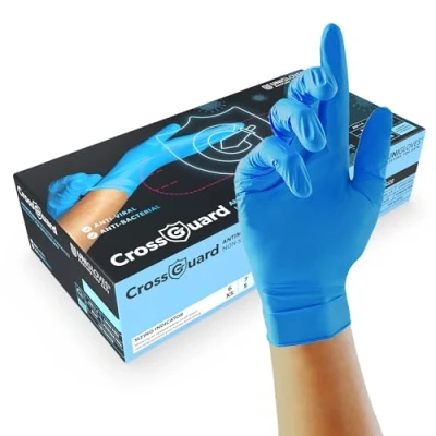 UNIGLOVES CrossGuard Blue Antimicrobial Nitrile Disposable Gloves, Medical Grade, Puncture and Chemical Resistant, Size XS