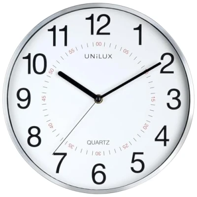 Precision The high quality Quartz-based oscillation system offers excellent reliability and unparalleled precision; it will never be late or early Readability This clock has been specially designed to be visible from near and far; its diameter (30.5cm), its white background and the size of the numbers, allow visibility over 30m Materials The clock face is made of plastic and a glass window is present on the front side to protect the hands Energy This wall clock consumes very little energy (average consumption 0.07mA); A simple AA battery (not included) and it will work for several months Warranty This wall clock has a 24-month warranty