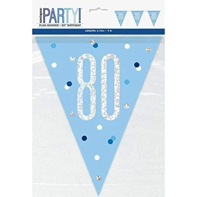 PACKAGE INCLUDES: 1 blue 80th birthday pennant banner.108". ATTRACTIVE DESIGN: Create an eye-catching party room decoration with this pennant banner. PERFECT FOR BIRTHDAY: This banner is ideal for 80th birthday party and matches them with other party supplies and decorations. DURABLE QUALITY: This banner is made of durable cardstock. EASY TO USE: This banner is easy to assemble and easy to use, just simply hang this on the wall and it will surely create a fantastic party decoration., Manufacturer: Unique