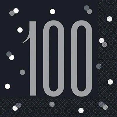 PACKAGE INCLUDES: 16 black dots 100th birthday luncheon napkins. CONVENIENT AND STYLISH: Create a stylish buffet table with these napkins and let the guests wipe spills and stains from the party food. PERFECT FOR BIRTHDAY: These napkins are ideal for Birthday parties and match them with other party supplies and decorations. PREMIUM QUALITY: These napkins are made of durable paper that is strong enough to wipe the spills and stains. EASY CLEAN UP: These disposable napkins make cleaning up quick and convenient., Manufacturer: Unique