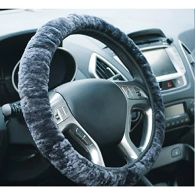 WALSER Steering Wheel Cover Teddy Plush Faux Fur Protector Lambskin Look Vegan Silver