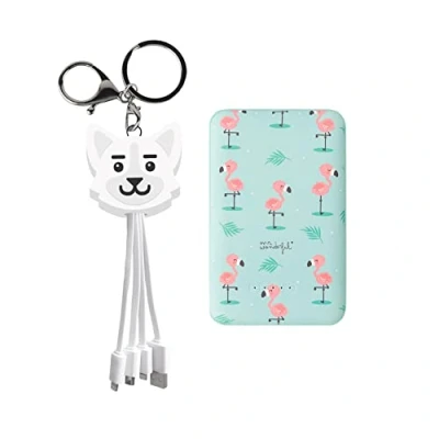 Universal Charger 3 in 1 Dog + Powerbank Wireless 5,000 Mah Flamingos