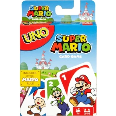 The classic matching card game, now with a Super Mario Bros theme Players take turns matching one of their cards with the colour or number card shown on the top of the deck Score points by being the first to get rid of all the cards in your hand First player or team to 500 wins, Manufacturer: Mattel GmbH