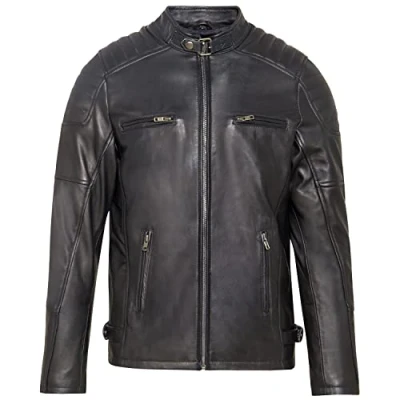 URBAN 5884 Men's Ralf Leather Jacket, Real Leather, Soft and Durable, black, XXL